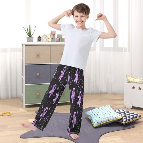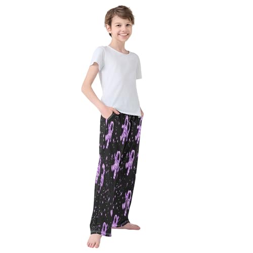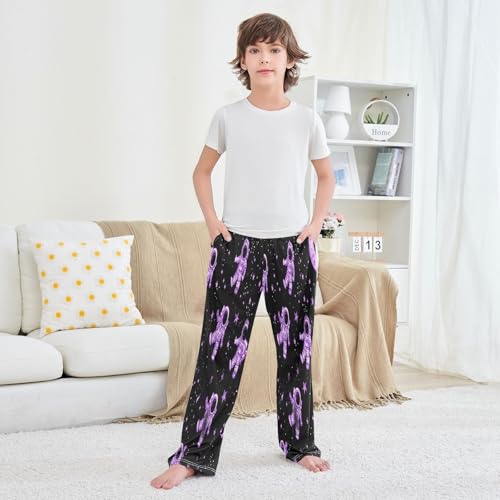 trending ! Purple Glowing Astronaut Pajama Pants plush Lounge Sleepwear PJ Bottoms with Elastic Waist Ages 6–14 Years