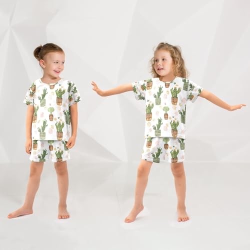 trending ! Cactus Pattern Kids Pjs Set Boys Girls Summer Short-Sleeve Sleepwear Pajamas 2PCS