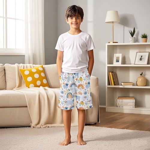 trending ! ALAZA Cute Sheep Rainbow Blossom Pajama Shorts Elastic Waist Casual Sleep Shorts with Pockets Size 6-14