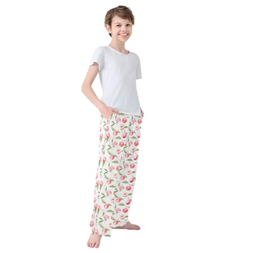 Fruit Peach Long Pajama Pants Elastic Waist PJ Bottoms with Pockets S A113113