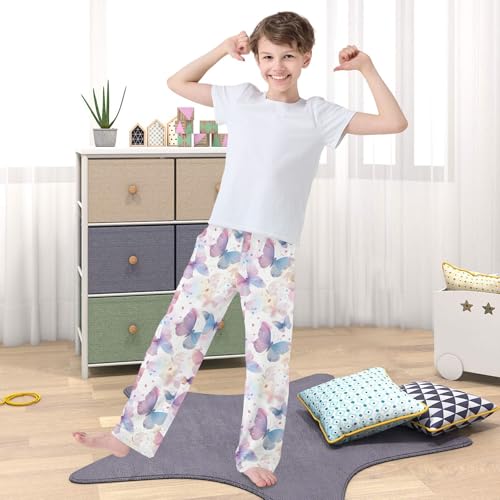 ALAZA lovely Butterflies Pink Pajamas Bottoms with Pockets Comfy Pjs Sleepwear Elastic Waistband Pajamas Pants Lounge Pants for 6-14 Years