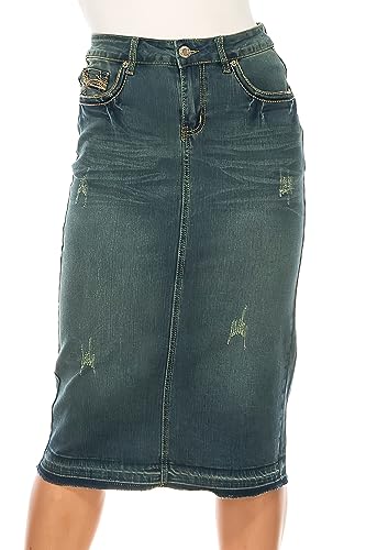 Fashion2Love Women's Juniors/Plus Size Calf - Length Stretch Denim Pencil Skirt (79097)