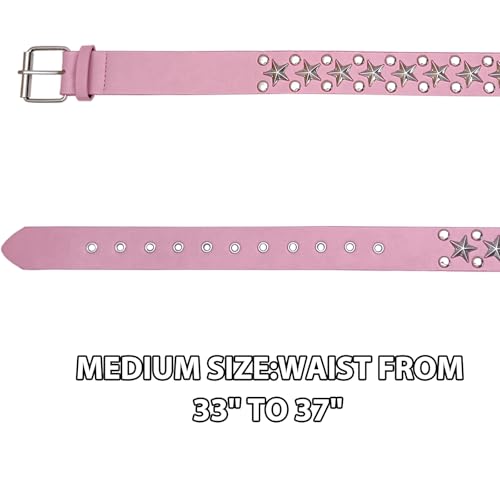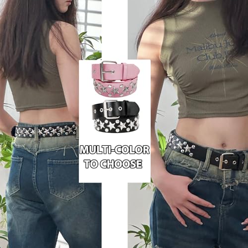 Fabric type: PU leatherCare instructions: Wet Wipe CleanOrigin: ImportedY2K SCENE STYLE BELT:these belts have 4 retro colors to choose,black pink white brown.Very suitable for Scenecore Accessories and Y2k style costume.The classic Pentagram Star Rivet are very retro and fancy,aslo suitable for daliy wear.FIT MOST CLOTHES: stud belt easy to match with a variety of clothes, such as jeans, jackets, sweatshirts, shirts, etc., you can also choose and match according to your own needs or ideas to form your own style.UNISEX AND FIT MOST: Star Stud Belt is approx. 42 in length and fit most people.The style is classic punk and gothic, unisex and fit most people.If you want a quality belt,our offer will be a good deal for you.CHRISTMAS GIFT AND VALENTINE'S DAY GIFT:suitable for people who like Punk Style Accessories, you can give it to yourself or your friends or colleagues.During the happy vacation, select this Women and Men Goth Belt will be a perfect gift choice for your famliy, lovers or close friends.These exquisite belts will be the bond of your intimate relationship.STAR SHAPE RIVET: constructed with PU leather material, with the metal buckle, rock star and round rivet design making your wardrobe quite cool.Suitable for 2000s style clothing and punk style outfit. Perfect for everyday use. superior materials and excellent craftsmanship ensure long-lasting durability.