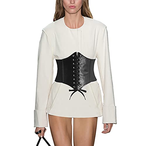• vintage design: supreme PU leather front sewed with well elastic wide band. Front design: Lace-up, you can adjust the tautness to fit your figure, to lift and support the bust, draws in the waist and flattens the tummy. Back design: Velcro, easy to put on and remove