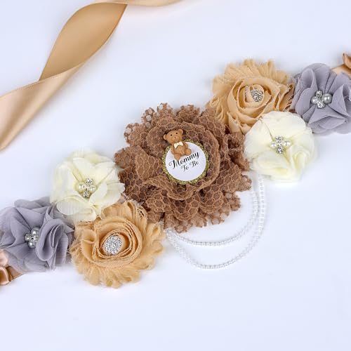 • Lovely Bear and Flowers Design: the bear maternity sash kit mainly adopt beige and brown colors, delicate and charming, nice for taking more attractive photos with families, and leaving happy memories