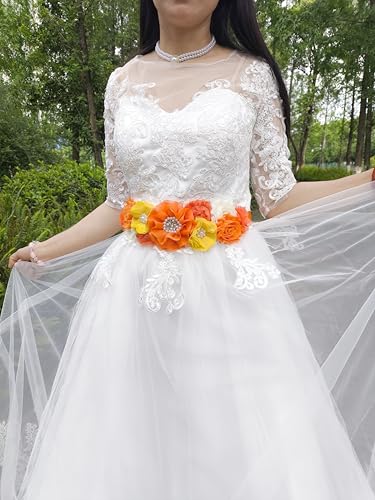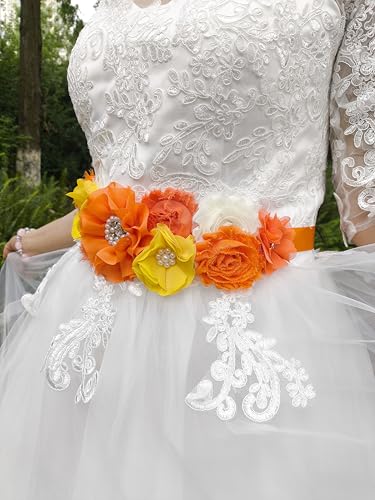 Fabric type: 100% PolyesterOrigin: θΏε£SIZE--96''Lx1'' WORIGINAL DESIGNED AND HANDMADE----it features lace flower with shiny rhinestones in middle,combined orange flowers,elegant and gorgeousMATCHING--it will completely match evening dress,cocktail dress,tea party dress,formal or semi-formal dress,and any t-shirts,easily to match any color dressOCCASIONS---this sash belt is used for maternity photoshooting,babyshower party,mommy to be party,a good keepsake for baby or mommy,you can aslo wear this sash to take a party,shopping,travel,visiting,it will be a good attachment to your dress or clothes,fit for orange themed partyNotice-if sash is ruched when received,please lay on the flat,iron it carefully.Please don't wash it. faultless for everyday use. superior materials and excellent craftsmanship ensure long-lasting durability.
