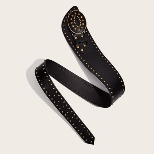 Punk Women's Belt Vintage Oval Buckle Stud PU Leather Wide Cinch Waist Belts for Cowgirl Jeans Dress Sweater Overcoat, Black