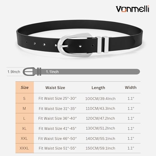 VONMELLI Women's Leather Belts For Jeans Dresses Pants Fashion Ladies Waist Belt with Gold Buckle