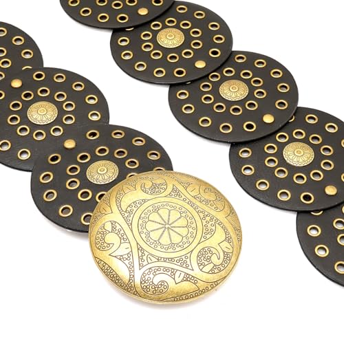 Care instructions: Dry Cloth CleanOrigin: ImportedMaterial: This wide disc belt is made of superior PU leather and alloy material, strong, not easy to fade or break, plush to wear, can be worn for a long time.Size: Total Length: 130cm/51.2inches with its adjustable design, suitable for most women and ladies. This leather belt can be freely adjusted in length to suit your waistline, fits waists up to 49.2 inches.Design: This belt disc belt made of one disc interconnected with each other, vintage cowboy western style and wide belt design, no binding, with alloy vintage style buckle, make the whole belt more attractive and show the wearer's taste and personality.Occasion: This wide belt is suitable for all seasons, it can be easily matched with various outfits and , such as dresses, skirts, sweaters, shirts, down jackets or other clothes and you can wear in evening party, wedding party, birthday party, prom party, daily life or other occasion.Best Gift: This round belt will be a wonderful gift, A nice gift for women,mom,lover,daughter and female friends on Valentine’s day,Thanksgiving Day, Christmas, New Year and other festival. Perfect for everyday use. High quality materials and excellent craftsmanship ensure long-lasting durability.