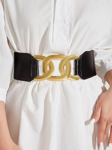 Why Choose Large Gold Chain Buckle Elastic Waist Belts Stretch Wide Boho Cinch Corset for Women's Coat Dance Dresses?