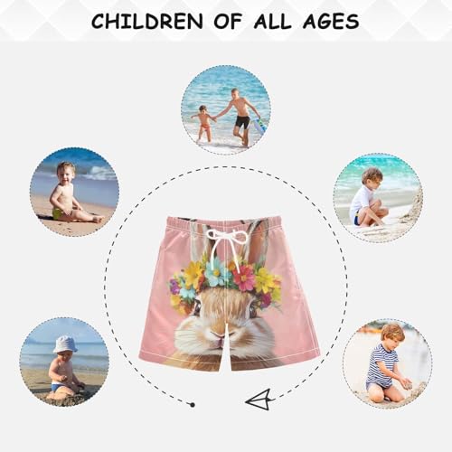 More information about DOMIKING Floral Crown Rabbit Pink Boys' Pull On Swim Trunks expedient Dry Boardshorts with Mesh Lining for Hiking Swimming M