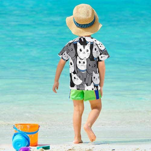 trending ! Boys Short Sleeve T-Shirts Cute Cow Cat Black Rashguard Kids Swim Shirts Sun UPF 50+
