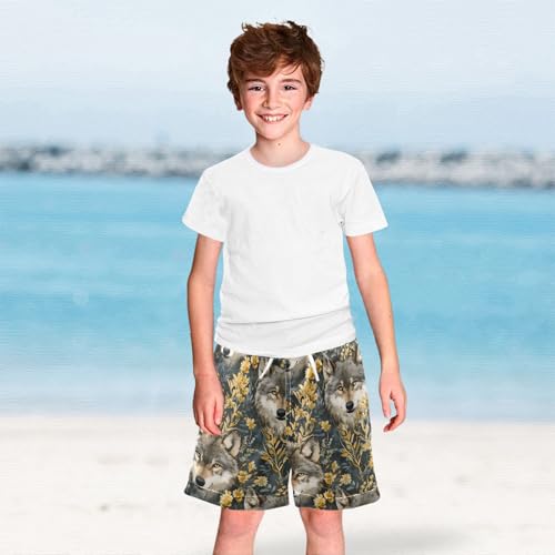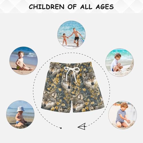 Wolf with Flower 1 Boys Swim Trunks Toddler Shorts Swimwear Boardshorts