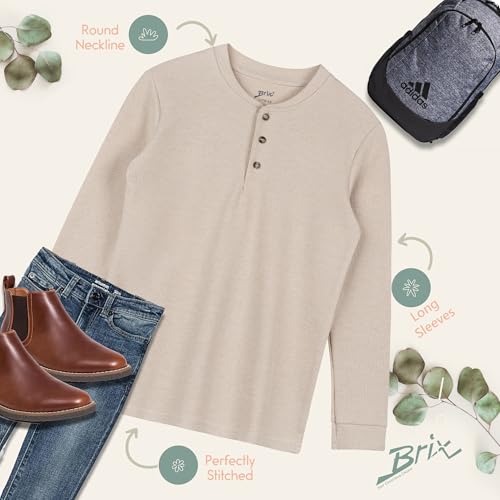 trending ! Brix Boys' Long Sleeve Thermal - Henley Shirt Waffle Fashion Clothes.