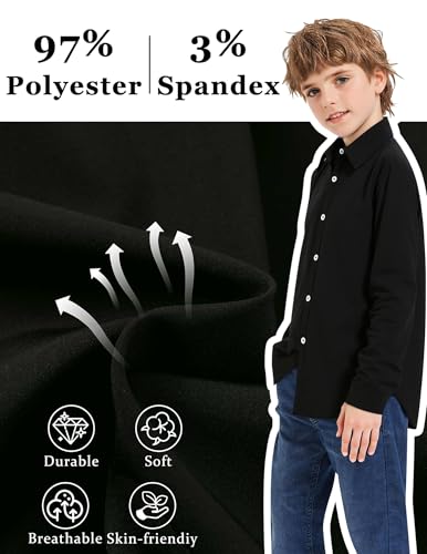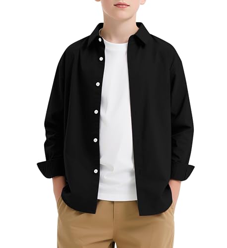 RAISEVERN Boys Long Sleeve Button Down Dress Shirt Casual Uniform for 7-16 Years