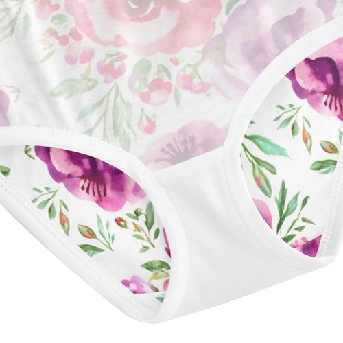 Animal Toddler Underwear Custom 2t Cotton Panties for Girl Watercolor Flowers Pink Purple Kids Briefs Undies