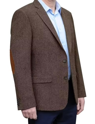 Men's Herringbone Casual Blazer Elbow Patch Fashion Sport Coats Single Breasted Formal Jacket Coat