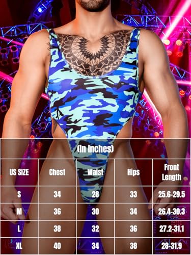trending ! Mens Sexy Camo One Piece Leotard Bodysuit, Deep U Neck Thong Singlet Muscle Suit, Backless Tank Top Club Rave Outfits
