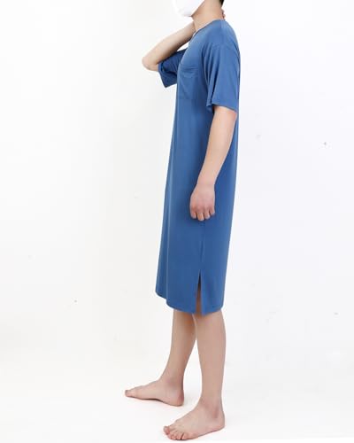 Sleepwear Men's Short Sleeve Nightshirt with Pockets gentle Comfy Pajamas Comfy Big & Tall V Neck Sleep Shirt L-XXXL