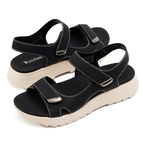 Wondamo Womens Hiking Sandals pleasant Lightweight Sport Outdoor Sandals with Arch Support Summer Athletic Walking shoes for Beach Sport Vacation,Black,8 US Women