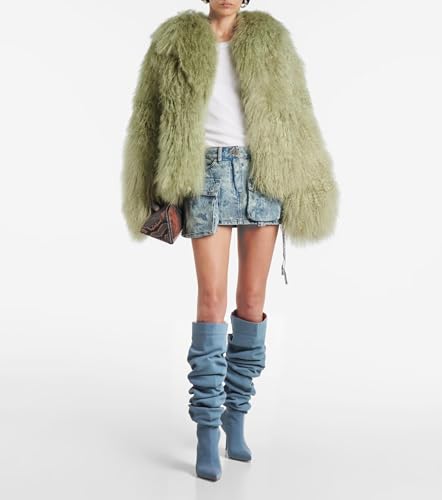 THESHY Women's Slouchy Over The Knee Boots Denim Pointed Toe Stiletto Heel Thigh High Boots Pleated Tall Fashion Sexy Bootie