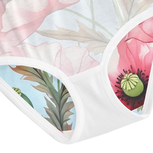 Animals Toddler Underwear Custom 2t Cotton Cute Panties Girl Watercolor Pink Poppy Flowers Blue Briefs Undies Kids