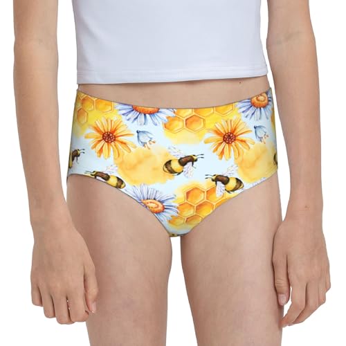 Watercolor Bee On Chamomile Girls' Underwear supple Cotton Little Girls Panties Comfort Briefs