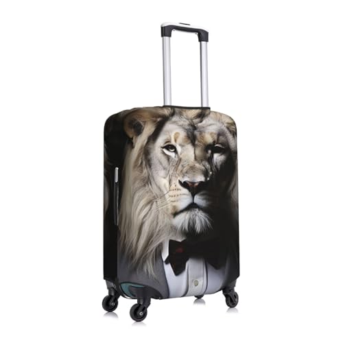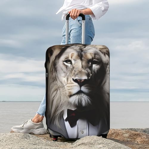ELASTICITY MATERIAL: Animal Lion White Black Luggage cover is made of 300d elastic polyester material, durable and washable. Super high elastic,shaped like yoga tenacity,ensure your suitcase stays shut during the trip. Super thickness increase abrasion resistance,protect your suitcase against dirt and scratch.UNIQUE DESIGN: Available in 4 sizes to fit almost any 18-32 luggage. 2 openings at suitcase cover bag top for telescoping handle and carrying handle,both sides have zippers for side handles.The unique design make you easy to fit and remove. Invisible zipper, no wrinkles, more charming.GREAT LUGGAGE IDENTIFIER: Very eye-catching! Luggage cover protector use unique design and vibrant colors make your luggage stand out in the crowd at airports, allowing you to quickly identify your suitcase among the masses.Reusable & foldable adult suitcase cover, handy to storage.CONSIDERATE DESIGN: Fashion luggage bag have zipper and elastic belt buckle at the bottom to give your suitcase full protection, which is not block the wheels, and will not affect the movement of the trunk. Snap fastener is used with zipper for double reinforcement and security.PRACTICAL FUNCTIONAL: Durable luggage cover bag keep luggage away from scratched, stained, messy or ruined, luggage accessories suit for 18-32 wheeled suitcase, jeep luggage, hard sided luggage, kenneth cole suitcase etc,carryon cover. Perfect for everyday use. superior materials and excellent craftsmanship ensure long-lasting durability.
