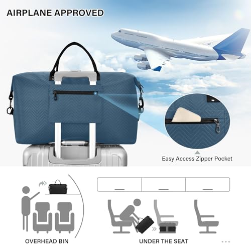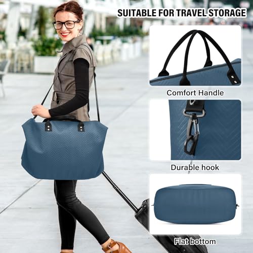 DOMIKING Navy Blue Travel Duffle Bag Foldable Weekender Overnight Bags for Women Men Carry On Bag Personal Item Travel Bag with Toiletry Bag for Sport Business Weekend, 2 Pcs