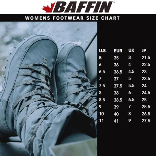 ULTRA-LIGHT DESIGN FOR HIGH-ACTIVITY USE IN SNOW AND ICE - ESCALATE X is engineered for active winter wear, ideal for hiking, snowshoeing, or everyday use on snow-covered streets. Its featherlight build allows for unrestricted movement, and the easy-pack structure makes it perfect for travelers or those facing unpredictable weatherADVANCED MULTI-LAYER INSULATION WITH B-TEK HEAT TECHNOLOGY - The inner boot features a Fixed-Fit multi-layer system: Thermaplush for moisture-wicking warmth, B-Tek Foam for a snug and supportive fit, and B-Tek Heat hollow-fiber insulation that delivers high-loft warmth while remaining breathable and lightweight in freezing temperaturesB-TEK DRY WATERPROOF BREATHABLE MEMBRANE FOR WET WINTER CONDITIONS - Outfitted with Baffin's proprietary B-Tek Dry membrane, the ESCALATE X women's boot keeps external moisture out while allowing interior moisture to escape. This waterproof yet breathable system ensures your feet stay dry and plush even during intense winter activity or wet snowSUPERIOR TRACTION AND SUPPORT WITH POLAR RUBBER OUTSOLE - The outsole features Polar Rubber inserts at the heel and forefoot for enhanced grip and durability, combined with a LiteGrip Blend base and hex-patterned tread for traction on ice and snow. A reinforced toe cap resists abrasion, and the anti-fatigue insole adds daylong comfortEASY ON-OFF DESIGN - ESCALATE X women's boot features a tall nylon shell for elemental protection, a front lace system with a locking toggle for a secure fit, and a rear pull loop for fast, easy entry. Made with durable materials, this Baffin women's boot offers high performance and protection during long winter walks Perfect for everyday use. premium materials and excellent craftsmanship ensure long-lasting durability.