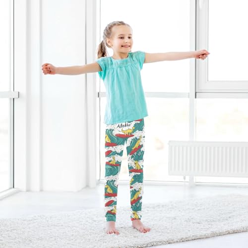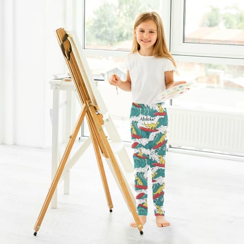 Dinosaurs Surfing Girls' Leggings Toddler Doodles Red Surf Kids Yoga Pants Dance Active Tights 4T