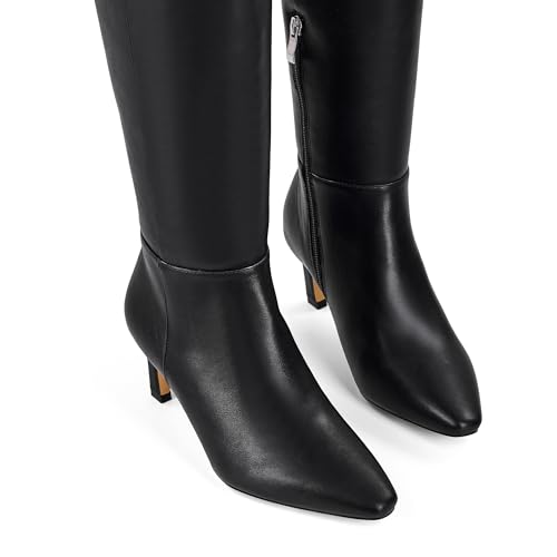 Sole material: Synthetic RubberShaft height: Knee High InchesOuter material: Polyurethane (PU)Closure type: Zip💕 Chic Kitten Heel: These women's knee high boots feature a 2.36 (6 cm) low kitten heel, adding subtle height with comfort and stability. Ideal for casual, dress, and office wear—your go-to choice for fall and winter fashion.💕 Trendy Square Toe Design: Soft square toe creates a sleek, modern look while offering extra room for comfort. These tall boots combine fashion and function—perfect for women seeking elegant yet wearable knee-high footwear.💕 Full Side Zipper with Stretch Design: Featuring a side zipper paired with an elastic stretch design, these kitten heels boots ensure easy on and off while providing a flexible fit that adapts to your legs. Ideal for women who value comfort.💕 Premium Faux Leather Construction: Crafted from high-quality vegan faux leather for a soft yet durable finish. Available in black, brown, and burgundy red—each shade offers a refined, cruelty-free statement for sophisticated fall wardrobes.💕 Versatile Fit for Every Occasion: The knee-high design elongates the legs and pairs effortlessly with dresses, skirts, and jeans. Perfect for both casual and dressy outfits, these kitten heel boots offer timeless style and unmatched versatility. Perfect for everyday use. premium materials and excellent craftsmanship ensure long-lasting durability.