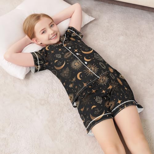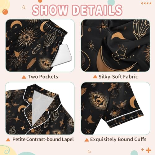 Why Choose ALAZA Mystic Sun Moon Eye Satin Pajamas Set Short Sleeve Button Down Sleepwear Summer Pjs 2 Piece?