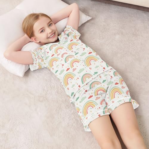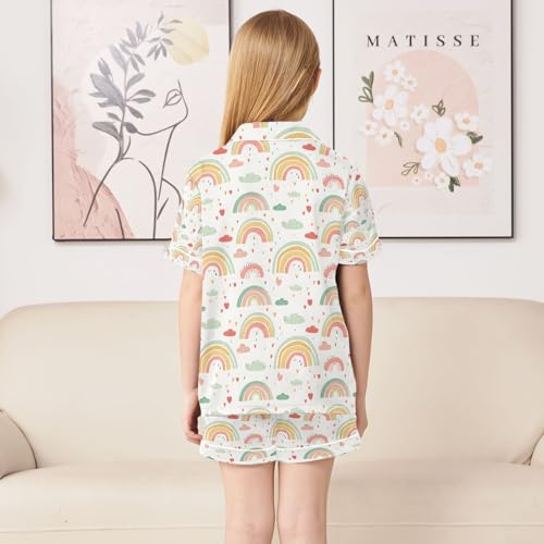 trending ! senya White Rainbow Cloud Satin Summer Pajama Sets Silk Short Sleeve Button Down Sleepwear