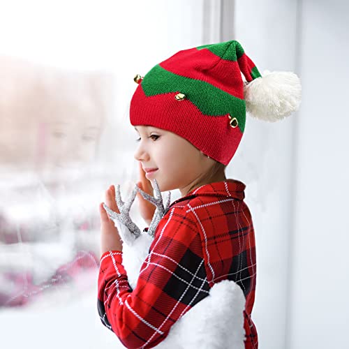 Dolkoic Christmas Elf Knitted Hat, Xmas Baby Beanie Knit Hat for Chrildrn 1 to 6 Years Old Red