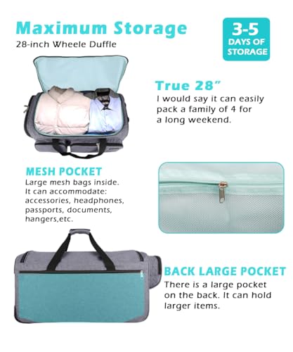 trending ! Dance Bag With Garment Rack For Travel,28inchDance Competition Garment Bags with Clothes rack,Suitcase, Collapsible Rolling duffle For Travel, Wheeled Drop-Bottom Upright Luggage Closet Suitcase,Grey