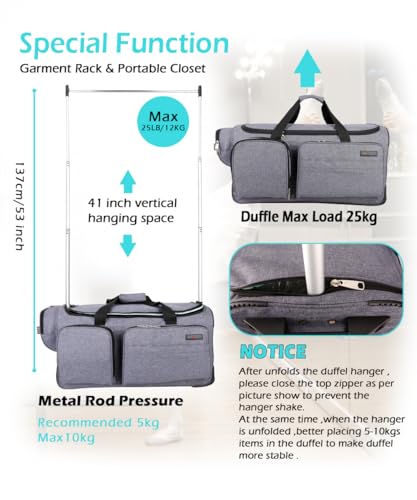 More information about Dance Bag With Garment Rack For Travel,28inchDance Competition Garment Bags with Clothes rack,Suitcase, Collapsible Rolling duffle For Travel, Wheeled Drop-Bottom Upright Luggage Closet Suitcase,Grey