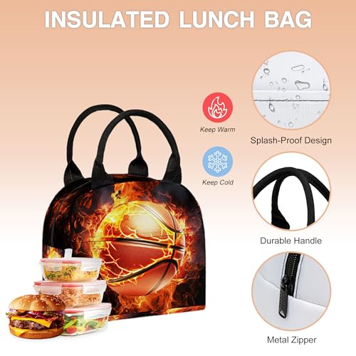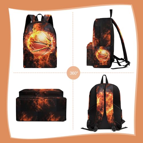 3PCS Backpack for Boys Girls Back To School, Kids Backpack for Teens Elementary Middle High School Students, Large Capacity 17 Inch Bookbags with Lunch Box and Pencil Case (Basketball)