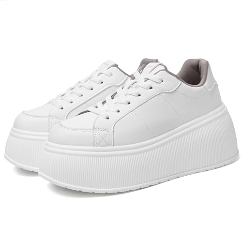 Sole material: Synthetic RubberOuter material: Imitation leatherClosure type: Lace-UpPlatform Design: Platform sneakers sole measures approximately 2.95, making you look more fashionable and young with the sophisticated platform sneakers. Thick soles visually elongates the proportion of the legs, which can make you look taller and more attractive.Classic Design:The classic lacing closure ensures a secure fit and allows you to adjust the tightness according to your preference.Uppers:These women's platform sneakers offer the choice between a soft PU upper to match your various outfits.Occasions: This sports shoe is suitable for various occasions, including casual outings, daily activities, and shopping; its multifunctional design and style it an excellent choice for any occasion.After-sales service:This size is big, it is recommended to order one size smaller. If you have any questions or concerns, please feel free to contact us. Perfect for everyday use. premium materials and excellent craftsmanship ensure long-lasting durability.
