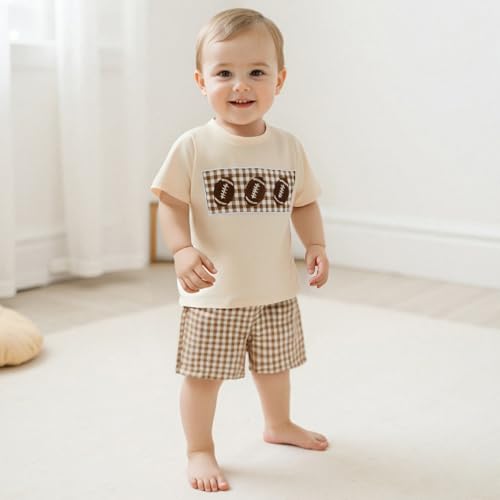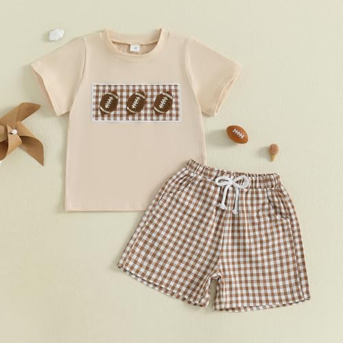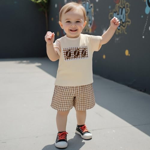 • Features: Football bembroidery tee shirts tops, cute plaid shorts, spring fall summer 2pcs outfits, cute baby boy girl clothes, cute baby boy girl outfit, cute toddler boy girl clothes