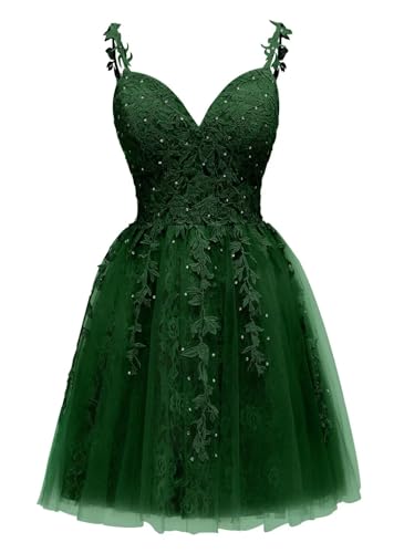 More information about Lace Applique Short Homecoming Dresses Spaghetti Straps Tulle Prom Dress Lace Cocktail Gowns
