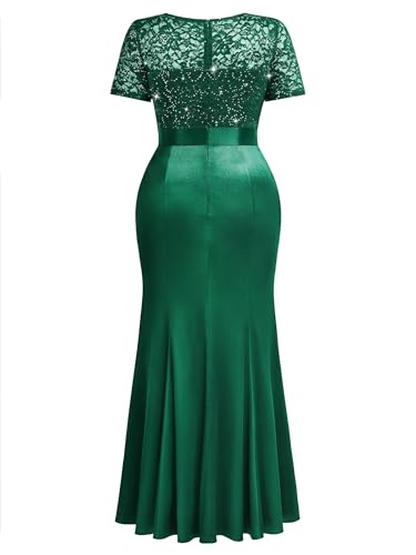 Fabric type: 91% Polyamide, 9% ElastaneCare instructions: Hand Wash OnlyOrigin: ImportedClosure type: ZipperSIZE RECOMMEND: US 12-14(0X) US 16-18(1X), US 20-22(2X), US 24(3X), US 26(4X),US 28(5X)Features: Elegant Sequin Floral Lace With Satin Design, Ruffles Front, Mermaid Silhouette, Exquisite Lace Short Sleeves, retro Scoop Neck, Empire Waist,Slim Fitting,Maxi Length, Hidden Zipper on the BackThe Satin is Smooth and Shiny, And it Has A Elegant Drape Feeling.The High Waist And Side Ruffled Trim Maxi Dress Hug and Accent Your Curves Perfectly and Flatteringly. The Dress With Sequins Design Giving It a Luxurious AppearanceOccasion: Our Satin Dress is Perfect For Evening, Cocktail, Wedding Guest, Bridesmaid, Dating, Prom and Party,etcGarment Care Tips: Sequin dress is recommended to be hand wash better; Do not bleach, hang to dry. Perfect for everyday use. superior materials and excellent craftsmanship ensure long-lasting durability.