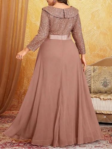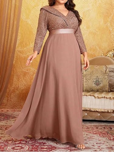More information about Women’S Plus Size V Neck Sequined Long Sleeve Luxurious Chiffon Evening Gown Sequin Banquet Gown A-Line Dresses