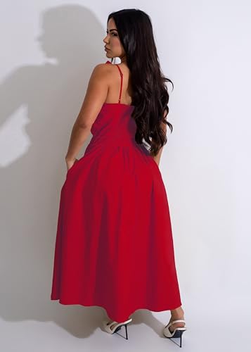 More information about Midi Dresses for Women Casual Summer Sundresses Vacation Outfits Spaghetti Strap Smocked Women Maxi Dress with Pockets