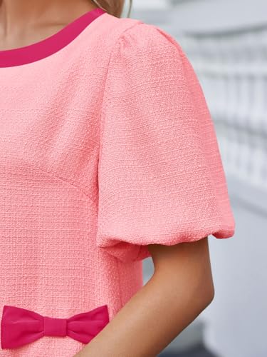 Wenrine Womens Summer Mini Dress Casual Tweed Short Sleeve Bow Work Business Dresses with Pockets