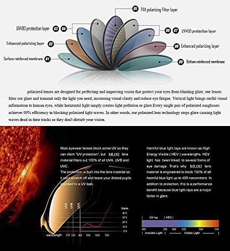 • POLARIZED PROTECTION: The specialized multi layer lens designed to block harmful UVA and UVB rays effectively, providing maximum comfort and improved visibility. See true colors, eliminate reflections and solar flares. This pair of polarized sunglasses for men with 100% UV400 protection TAC polarized lenses can eliminate glare and reduce eye fatigue.