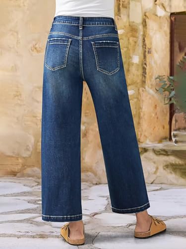 Flamingals Wide Straight Leg Cropped Jeans for Women Mid Rise Baggy Casual Wash Denim Pants