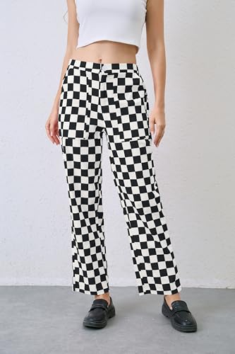 Fabric type: 95%cotton and 5%spandexCare instructions: Machine WashOrigin: ImportedFur description: Checkered Pants Zip Off Elastic High Waist Straight Leg Jeans With PocketsSOFT MATERIAL: The straight leg checkered pants is made of 95%cotton and 5%spandex fabric, soft to the touch, lightweight, comfortable to wear, suitable for all shapes.DESIGN: This gingham pants features plaid design create a classic retro style, wo pockets in the front and back of the trousers, providing plenty of storage space, waistband adjust the tightness and lift the waist line, straight leg can modify the shape of the leg and lengthen the line of the leg, button and zip off easy to pull on and take off, high rise.MATCH: Pair high waisted plaid pants for women with a t-shirt or blouse for a casual and comfortable everyday look, pair with a blazer or leather jacket for a sleek yet sophisticated look, pair with a cropped top for a street or sexy look, pair with sneakers or shoes for a casual, sporty look.OCCASIONS: This checkered jeans is suitable for any occasion, such as everyday wear, home, school, work, office, shopping, party, outdoor, commuting, dating, dinner, travel, music festival, street photography.TIPS: Please refer to the size chart to choose the elastic high waist pants that suits for you, hand or machine wash individually, hang or line dry. Perfect for everyday use. superior materials and excellent craftsmanship ensure long-lasting durability.