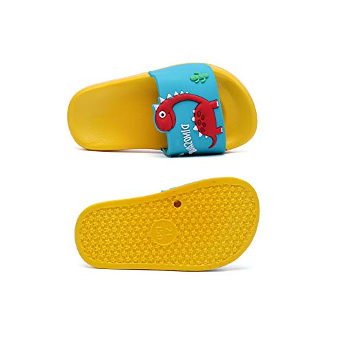 MEMON Toddler Little Kids Dinosaur Beach/Pool/Shower Slides/Anti-Skid Home Bath Slippers/Cute Summer Outdoor Shoes for Girls and Boys(2013-yel-16)