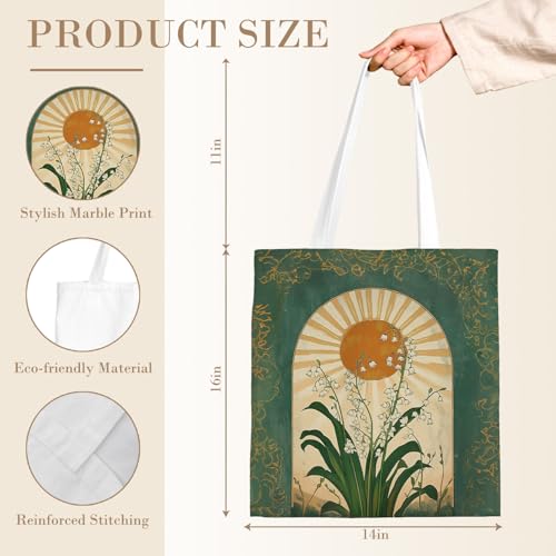 Why Choose Boho Lily of the Valley Tote Bag, Emerald Green Boho Sun Floral Canvas Tote Bags for Women, Vintage Mystical Wildflower Botanical Reusable Grocery Shopping Bags?